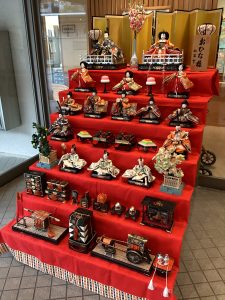 3月3日はひな祭り。玄関には立派なお雛様を飾り、昼食には、散らし寿司、菜の花酢味噌かけ、すまし汁、ひな饅頭をお出ししました。ご入居者に人気の散らし寿司は大変喜ばれ、ひな饅頭と一緒にかわいらしい華やかなお膳となりました。